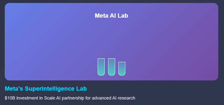 Meta announced a new “superintelligence” research lab led by Scale AI CEO Alexandr Wang, with plans to invest over $10 billion in Scale AI to advance AI development.
