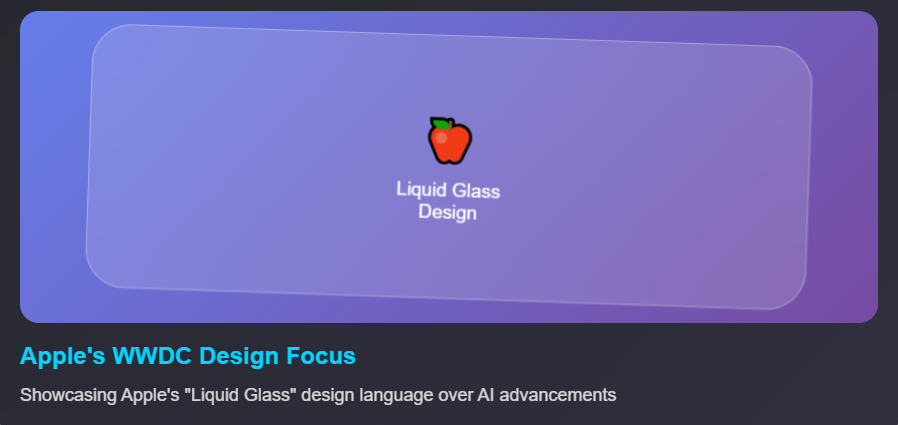 Apple’s “Liquid Glass” design language focuses on fluid animations, minimalist interfaces, and enhanced accessibility, aligning with its brand identity. However, the AI updates were modest, with Siri gaining improved natural language processing but no transformative “agentic AI” features like those from Google’s Gemini. The stock dip reflects broader market concerns, as Apple lost $533 billion in market cap over two days due to Trump’s tariffs targeting secondary manufacturing sites. A recent X trend also highlighted debates about large language models (LLMs), with critics arguing they lack true reasoning—potentially explaining Apple’s cautious AI approach.